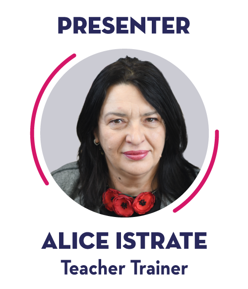 She has worked with different employers and partner organisations, from state schools to private language centres and NGOs and has had different roles. As an English Lead for British Council Bucharest, she liaised with teachers, Romanian authorities in the field of education and teacher training, as well as British organisations and assessment bodies. As a trainer, Alice delivered a range of courses on ELT methodology and contributed to many national conferences for Teachers of English with plenary speeches and workshops.